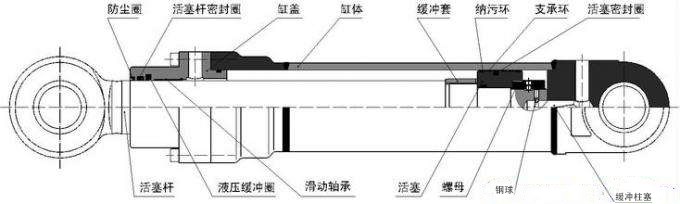1、缸筒;2、活塞桿;3、缸蓋;4、活塞;5、密封件;6連接耳環(huán)或者法蘭盤(pán)